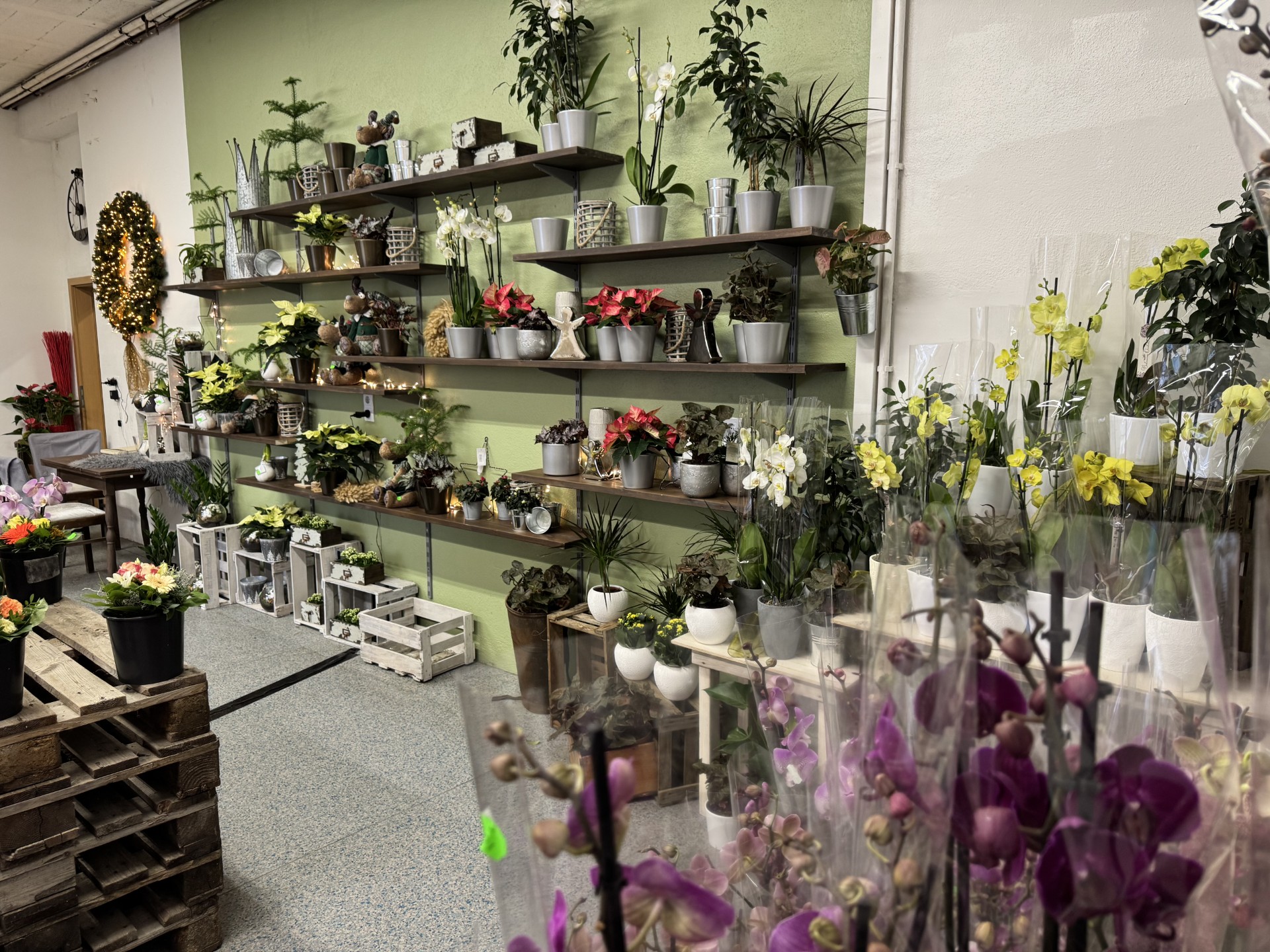 Unser Weihnachtstrend 2024 beinhaltet eine Vielzahl von Dekorationsmöglichkeiten, darunter Raum-, Tisch- und Türschmuck, Adventskränze, winterliche Lichter, Hängedekoration sowie alles, was sich aus Blumen und Pflanzen gestalten lässt. Je nach Ihren Vorlieben verwenden wir frische oder langlebige Materialien sowie Trockenblumen. Auch für die Außendekoration bieten wir winterharte Pflanzen und Naturmaterialien an. Ihre individuellen Wünsche setzen wir gerne um.